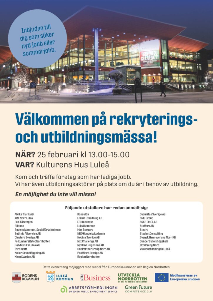Kom och prata möjligheter med oss på rekryterings- och utbildningsmässan i Luleå!