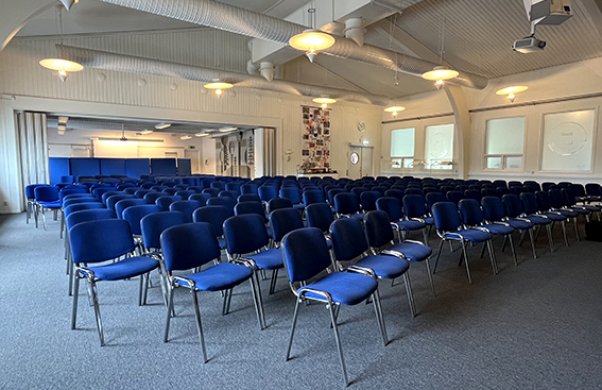 Aulan är vårt största lokal och rymmer upp till 200 sittande personer.