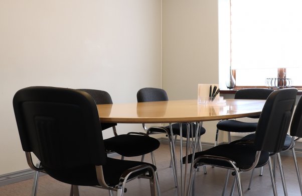 Ett mötesrum för 6 personer i styrelsesittning.